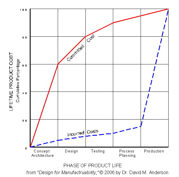 The fastest and cheapest place to make a part cheaper to manufacture is during the design phase; changes made later in the Manufacturing Process are more expensive to make. That's why it's important for every new design to stop and do a little homework on it to make sure it has been optimized for manufacturing.
